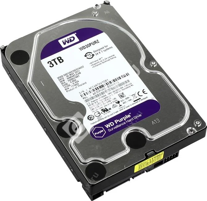 Модель Western Digital WD30PURZ принадлежит к специализированной серии WD Purple, предназначенной для использования в системах видеонаблюдения. Объем жесткого диска составляет 3Тб, форм-фактор 3.5 дюйма, интерфейс SATA 6 Гб/с.