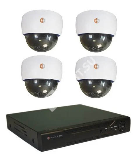 Hunter IP KIT-4/69 - готовый комплект видеонаблюдения для установки в помещениях. Состоит из четырех видеокамер с разрешением 1080р и сетевого восьмиканального видеорегистратора.