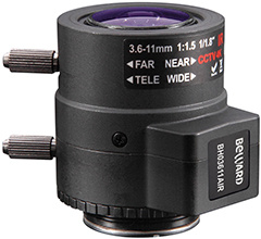 Настройка фокусного расстояния объектива в диапазоне от 3.6 до 11 мм осуществляется вручную. Поле зрения BH03611AIR может быть изменено от 44 до 106° (при работе с матрицами формата 1/1,8''), что позволяет не только осуществлять общий мониторинг объекта, но и настраивать обзор камеры на отдельно взятых областях сцены.