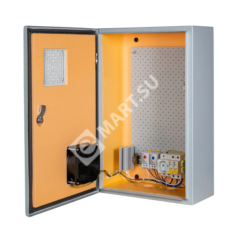 Климатический навесной шкаф Mastermann-3УТПВ-А (Ver. 2.0) IP 54 с вентиляторными решетками, вентилятором (активная вентиляция) и защитным реле от "холодного пуска".