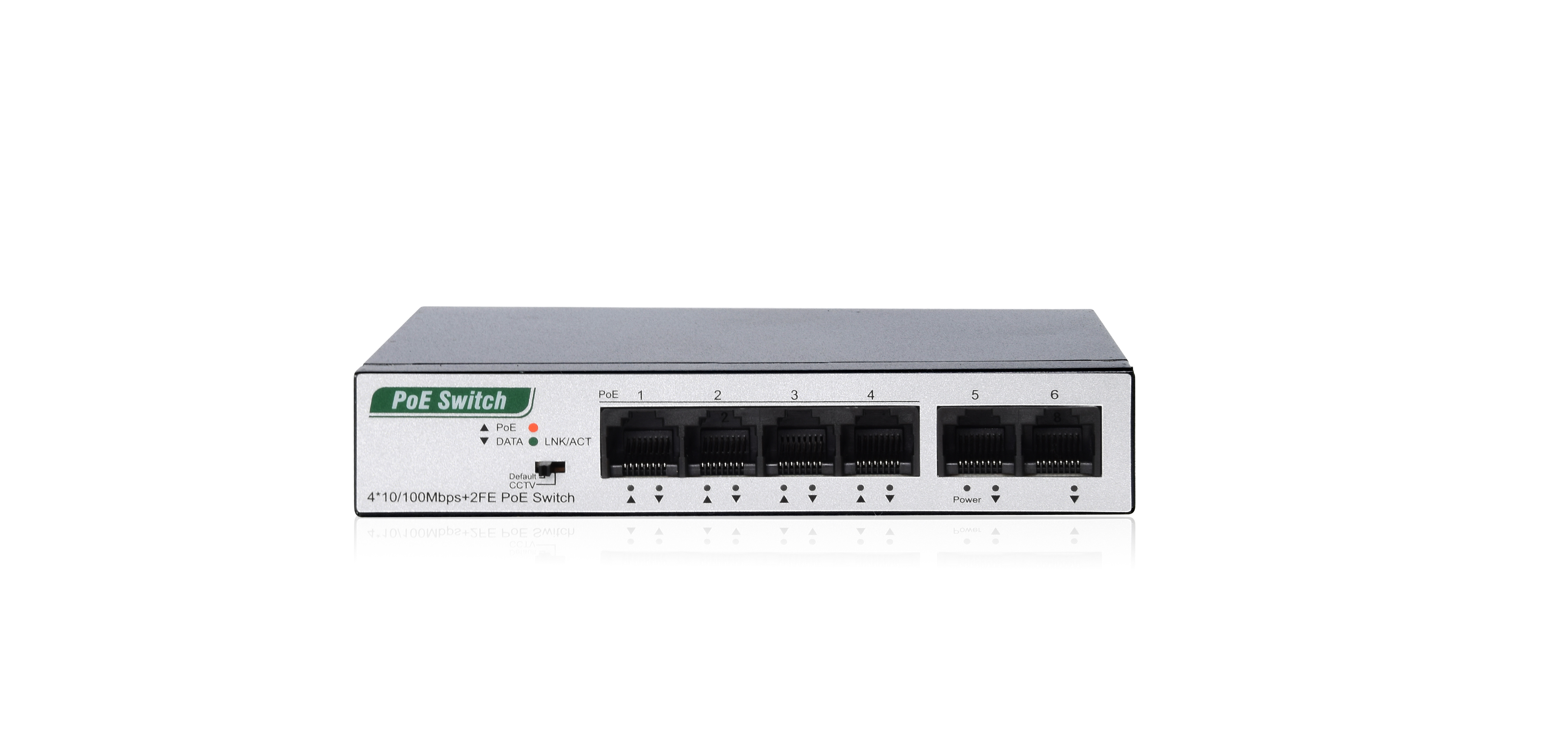 6 портов (4 PoE, 2 uplink), настольный