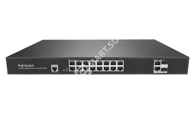 Сетевой коммутатор RVi-2NSM16G-2C — это высокопроизводительный 18 портовый сетевой коммутатор уровня L2. Предназначен для подключения конечных устройств (сетевые видеокамеры, сетевые видеорегистраторы, коммутаторы и др.), рабочих станций, серверов, соединения нескольких узлов компьютерной сети в пределах одного или нескольких сегментов, а также передачи электропитания с использованием технологии PoE. Он обеспечивает управление трафиком на основе адресов MAC, поддерживает VLAN и Quality of Service (QoS) для обеспечения надежной и безопасной передачи данных.