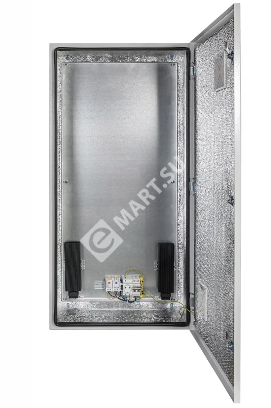 утеплитель из порилекса, замок 2 шт, ключ 1 шт, монтажная плата 1шт, гермовводы 5 шт (MG-25), розетка 1 шт, автоматический выключатель, 6А 1шт, клемма для подключения оборудования 2 шт, клемма заземления 1 шт, термореле 1шт, реле предстарта 1 шт, вентиляционная решётка с фильтром 2 шт, нагреватель мощностью 150 Вт 2 шт.