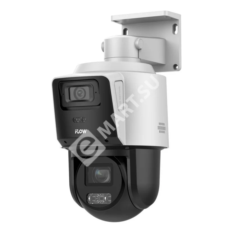 4Мп уличная поворотная IP-камера с технологией ComboVu Два видеомодуля: охват всей сцены и детализация. Фиксированный модуль: 1/2.8" Progressive Scan CMOS; 4Мп; объектив 2.8мм; угол обзора 114,9°; 0.01лк@F2.0; механический ИК-фильтр; ИК-подсветка и подсветка белым светом до 30м; 2560х1440@25к/с; сжатие H.265/H.264/MJPEG, Smart подсветка; тройной поток; ручная регулировка наклона модуля 7° - 17° PTZ модуль: