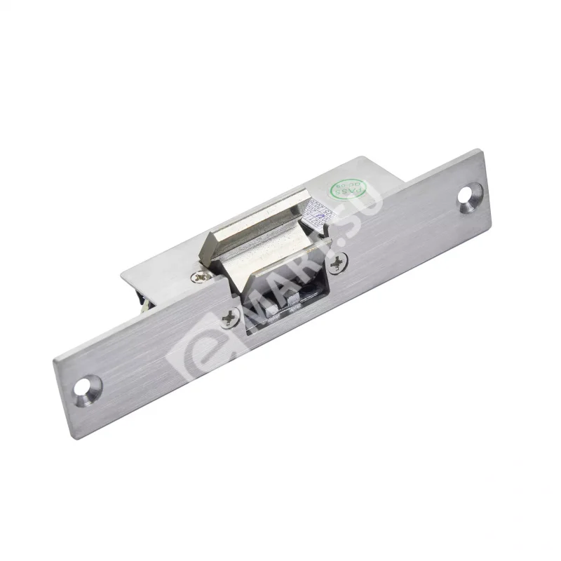 В исходном состоянии открыта, при подаче напряжения блокируется. Врезается в дверной косяк и с помощью контропоры осуществляет блокировку стеклянного дверного полотна.