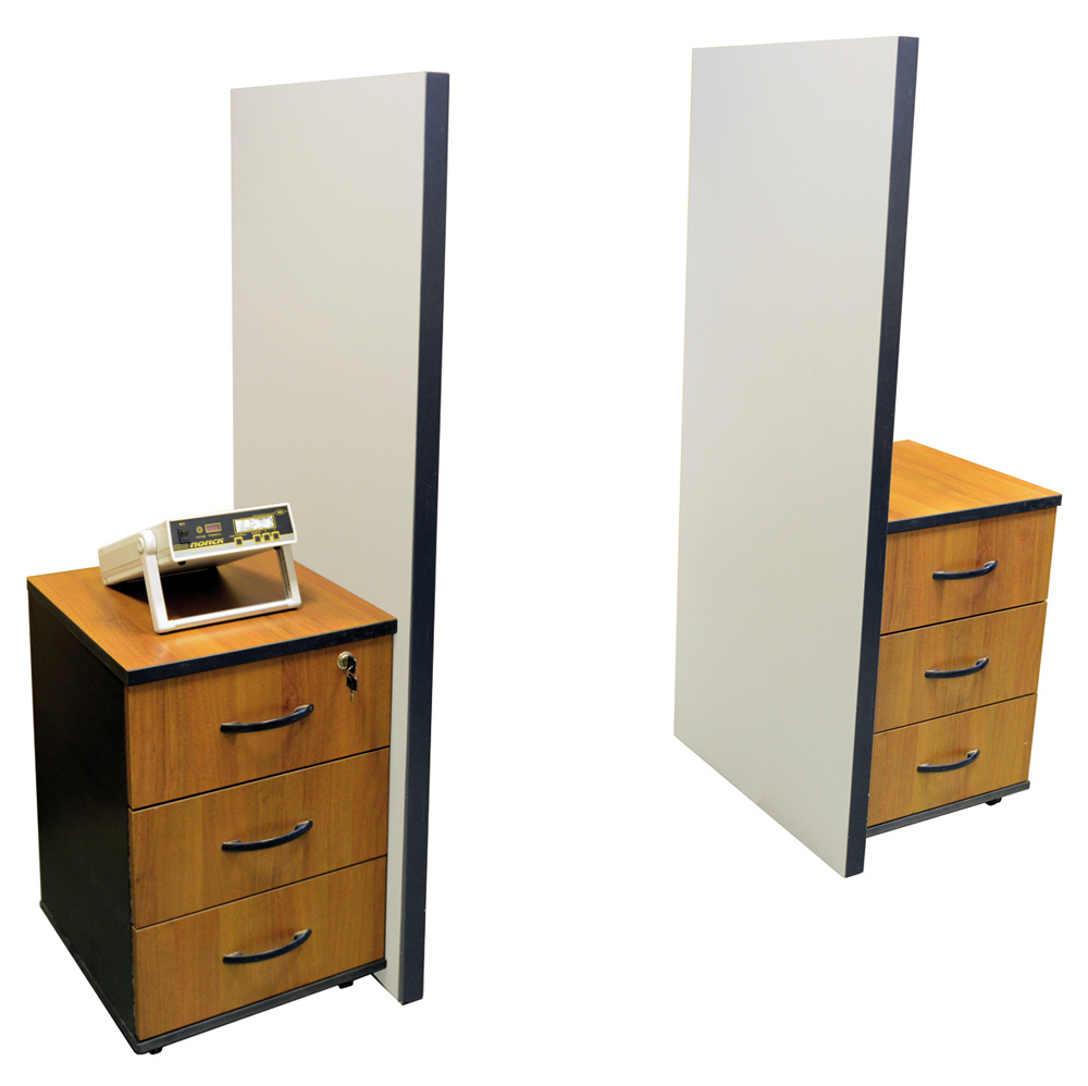 Выполнен в виде двух панелей, образующих контролируемый проход, и электронного блока, подключаемого к ним с помощью кабелей. Отсутствие привычной арочной формы позволяет легко закамуфлировать изделие под детали внутреннего интерьера и осуществлять контроль, не привлекая лишнего внимания входящих.