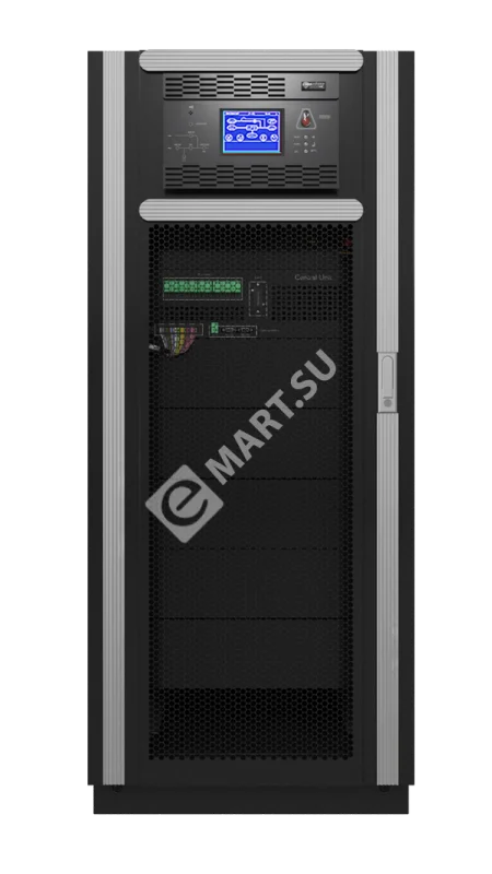 ИБП Сайбер Электро ПАТРИОТ-120Ш , вход 3Ф, выход 3Ф, максимальная мощность 120кВА/108кВт при установке 6 силовых модулей SM20KPM, без батарей, габариты 1600 x 600 x 900, масса шкафа (без силовых модулей) 173 кг.