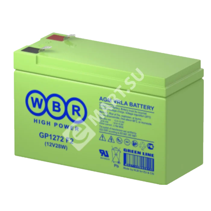 Аккумулятор WBR GP1272 F2 28W - герметизированная, выполненная по технологии AGM, батарея общего применения со сроком службы до 8 лет в буферном режиме или 260 циклов заряда-разряда в циклическом режиме при 100% разряде. Эта высокоэффективная, перезаряжаемая батареи, не требующая обслуживания в течение всего срока службы.