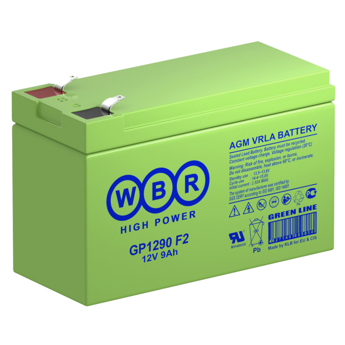 Аккумулятор GP1290 F2 - герметизированные, выполненные по технологии AGM, батареи общего применения со сроком службы до 8 лет в буферном режиме или 260 циклов заряда-разряда в циклическом режиме при 100% разряде. Эти высокоэффективные перезаряжаемые батареи не требуют обслуживания в течение всего срока службы.