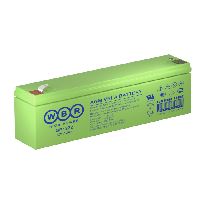 Аккумулятор WBR GP1222 - герметизированная, выполненная по технологии AGM, батарея общего применения со сроком службы до 8 лет в буферном режиме или 260 циклов заряда-разряда в циклическом режиме при 100% разряде. Эта высокоэффективная, перезаряжаемая батарея, не требующая обслуживания в течение всего срока службы.