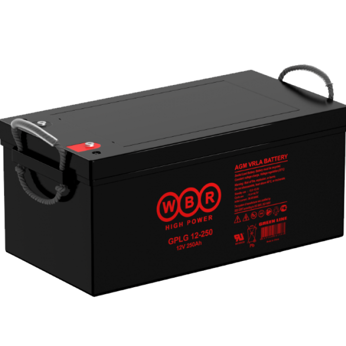 WBR GPLG12-250 - герметизированные, выполненные по гелевой (GEL) технологии, свинцово-кислотные аккумуляторные батареи общего применения со сроком службы 12 лет в буферном режиме или более 350 циклов заряда-разряда в циклическом режиме при 100% разряде. Эти высокоэффективные перезаряжаемые батареи не требуют обслуживания в течение всего срока службы. Основные области применения: источники бесперебойного питания (UPS), охранные и пожарные системы безопасности, оборудование телекоммуникации и электросвязи, аварийное освещение, телеметрическое, контрольное и другое оборудование.
