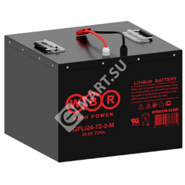 Аккумулятор WBR серии GPLi24-72-2-M литий-железо-фосфатные (LiFePO4), обладающие высоким качеством и надежностью, увеличенной в 10 раз цикличностью использования и уменьшенным на 60% весом по сравнению со свинцово-кислотными аккумуляторными батареями. Современная технология производства аккумуляторов с использованием химического взаимодействия углерода и феррофосфата на основе литий-ионных аккумуляторов исключает риск воспламенения или взрыва при сильном ударе, перезаряде или коротком замыкании.