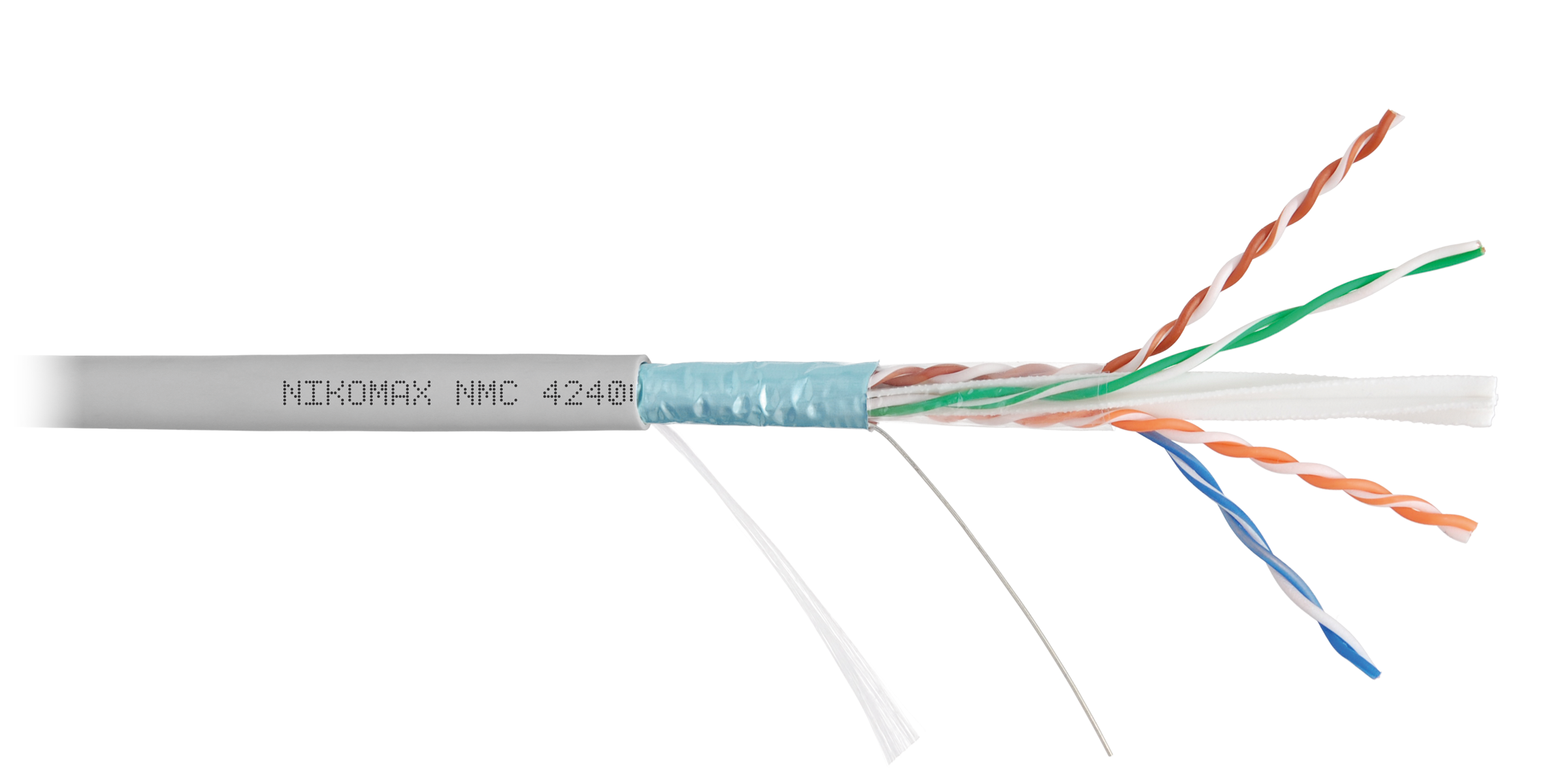 Кабель NIKOMAX F/UTP 4 пары, Кат.6 (Класс E), тест по ISO/IEC, 250МГц, одножильный, BC (чистая медь), 23AWG (0,55мм), поливинилхлорид, внутренний, серый, 305м - гарантия: 5 лет / 15 лет системная