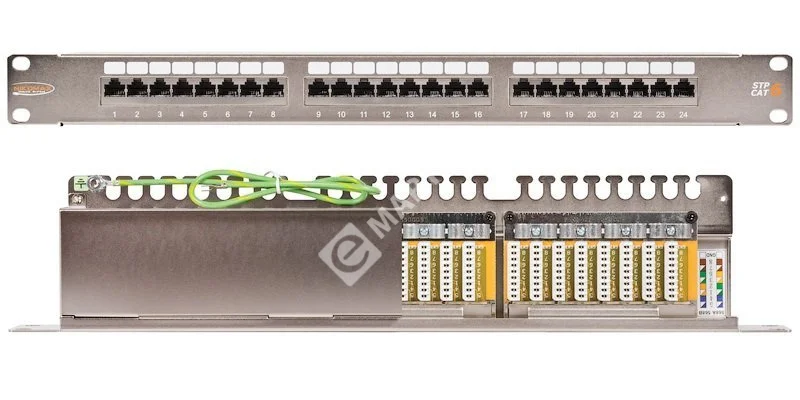Коммутационная панель NIKOMAX 19", 0,5U, 24 порта, Кат.6 (Класс E), 250МГц, RJ45/8P8C, 110/KRONE, T568A/B, полный экран, с органайзером, металлик - гарантия: 5 лет расширенная / 25 лет системная