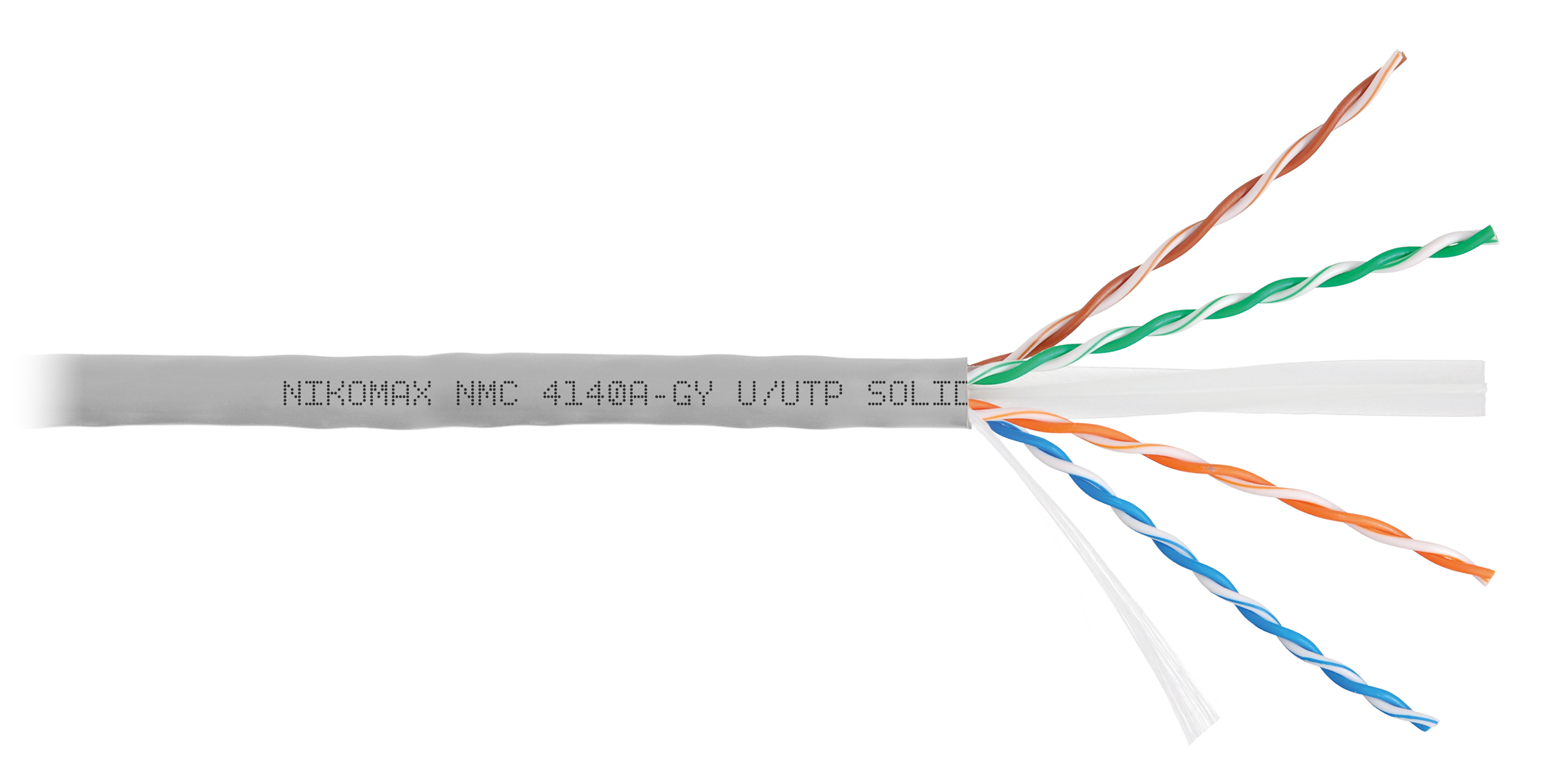 Кабель NIKOMAX U/UTP 4 пары, Кат.6 (Класс E), тест по ISO/IEC, 250МГц, одножильный, BC (чистая медь), 23AWG (0,55мм), поливинилхлорид, внутренний, серый, 305м - гарантия: 5 лет / 15 лет системная