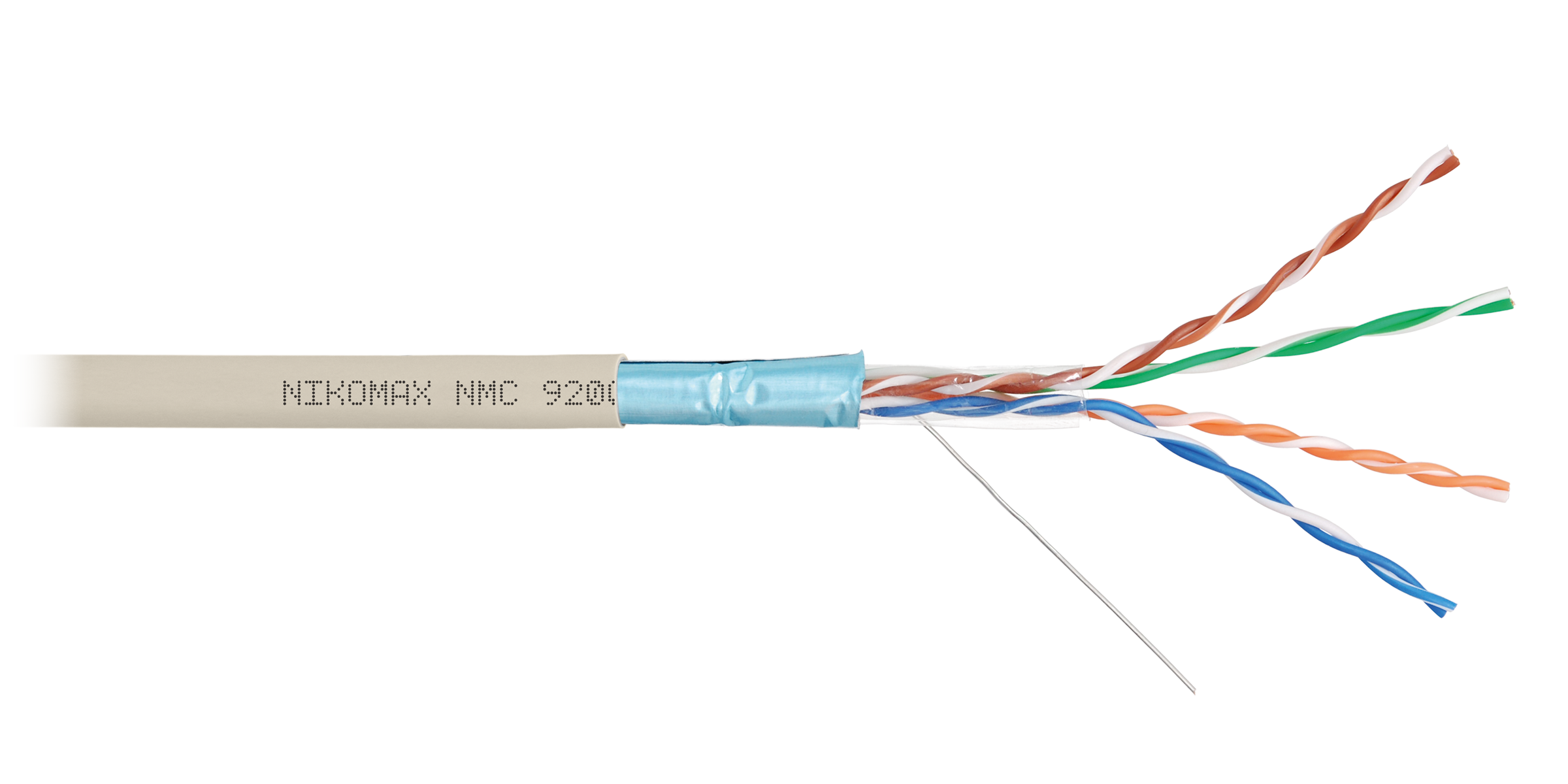 Кабель NIKOMAX F/UTP 4 пары, Кат.5e (Класс D), тест по ISO/IEC, 100МГц, одножильный, BC (чистая медь), 24AWG (0,52мм), полимерный материал нг(А)-LSLTx, внутренний, светло-серый, 305м - гарантия: 15 лет / 25 лет системная