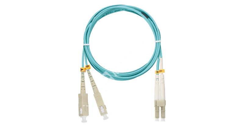 Шнур NIKOMAX волоконно-оптический, переходной, многомодовый 50/125мкм, стандарта OM3, SC/UPC-LC/UPC, двойной, полимерный материал нг(A)-HF, 2мм, аква, 5м
