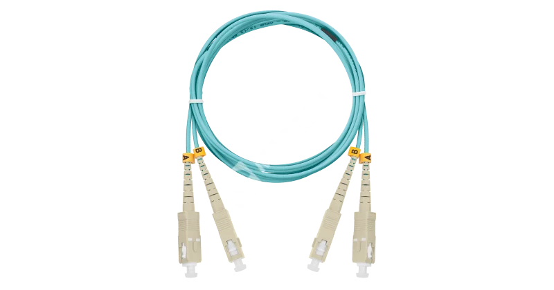 Шнур NIKOMAX волоконно-оптический, соединительный, многомодовый 50/125мкм, стандарта OM3, SC/UPC-SC/UPC, двойной, полимерный материал нг(A)-HF, 2мм, аква, 3м