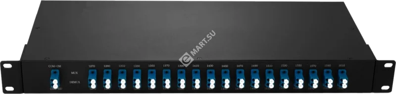 Мультиплексор CWDM двухволоконный, Mux+Demux, 4 канала, 4 длины волны (TRx:1330, 1310, 1290, 1270), оптические порты TRx типа LC/UPC, COM типа SC/APC, шасси 19', 1U