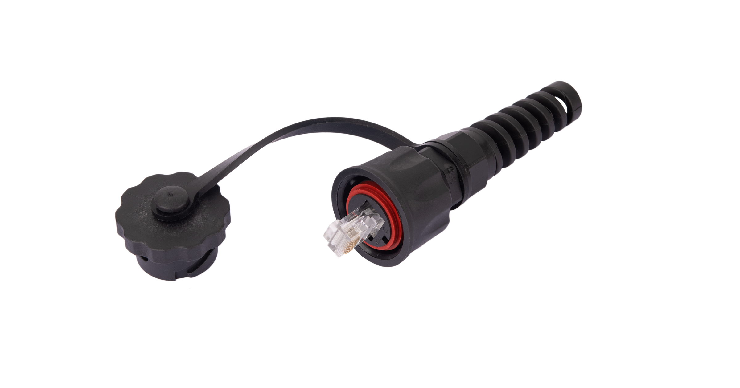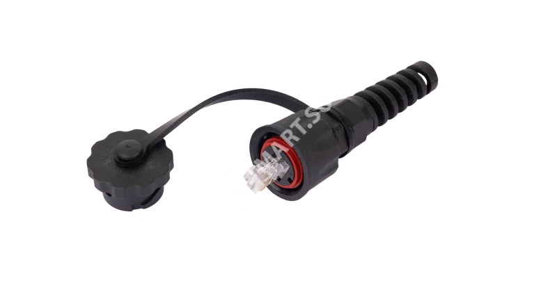 Индустриальный коннектор NIKOMAX RJ45/8P8C, Кат.6 (Класс E), 250МГц, покрытие 50мкд, неэкранированный, IP67, для одножильной витой пары, с защитной крышкой, черный