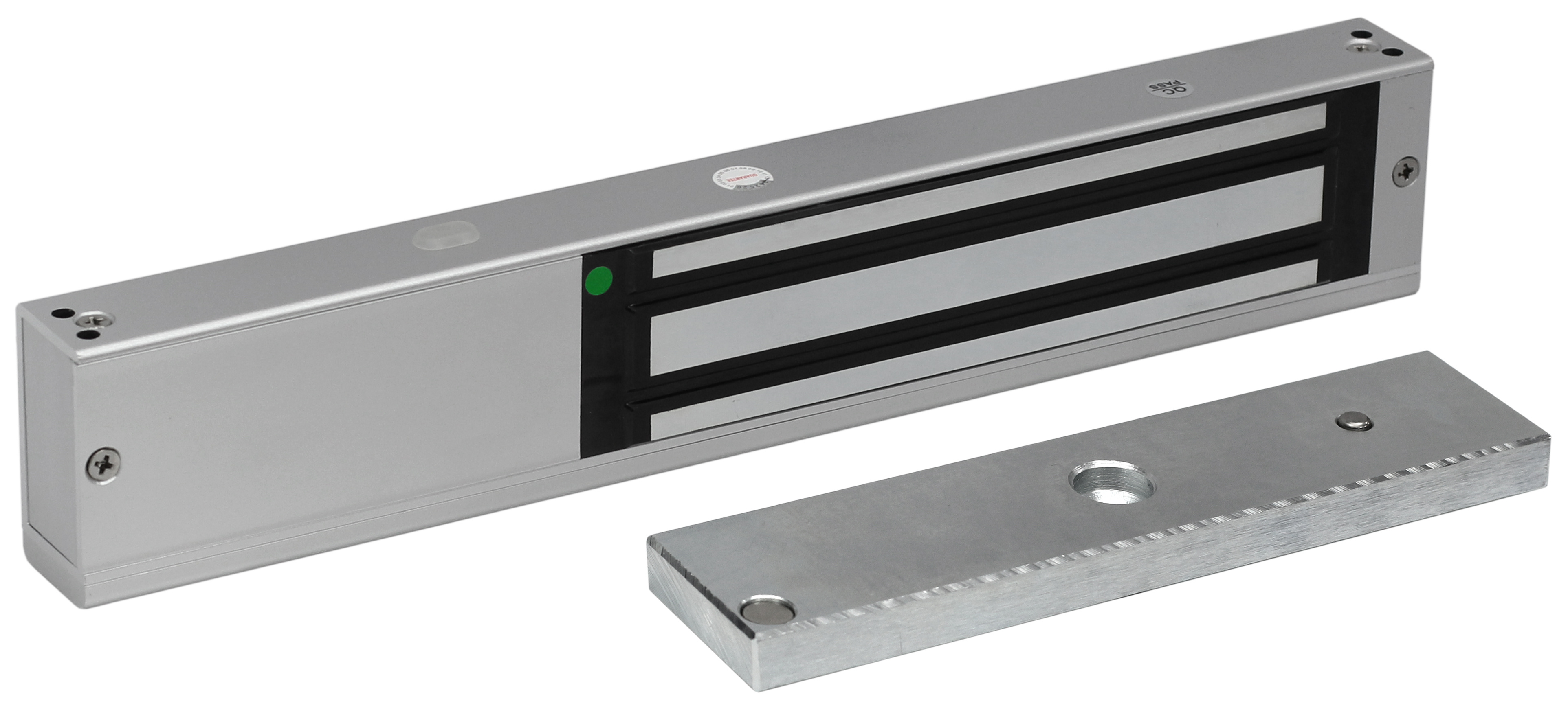 Электромагнитный замок с местом под автономный контроллер, внутреннее исполнение, СИД, датчик положения двери, усилие 320-340 кг.