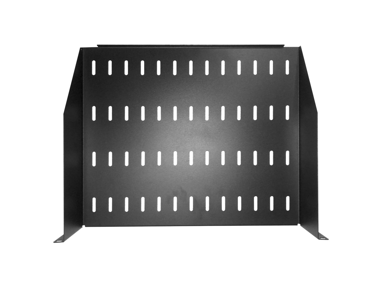 Полка подходит для телекоммуникационых шкафов любых серий с рабочей глубиной не более 370мм, крепится на 2 монтажные стойки Габариты (ШxВxГ): хx370 мм.; Максимальная нагрузка 20 кг; Корпус - сталь 1,5 мм.; Покрытие порошковое RAL 9005 Крепеж для фиксации полки к стойке приобретается дополнительно: 53508 Крепежный набор, "крестовой", размер M6*16 с прокладкой Минимальное необходимое количество: 4 шт.