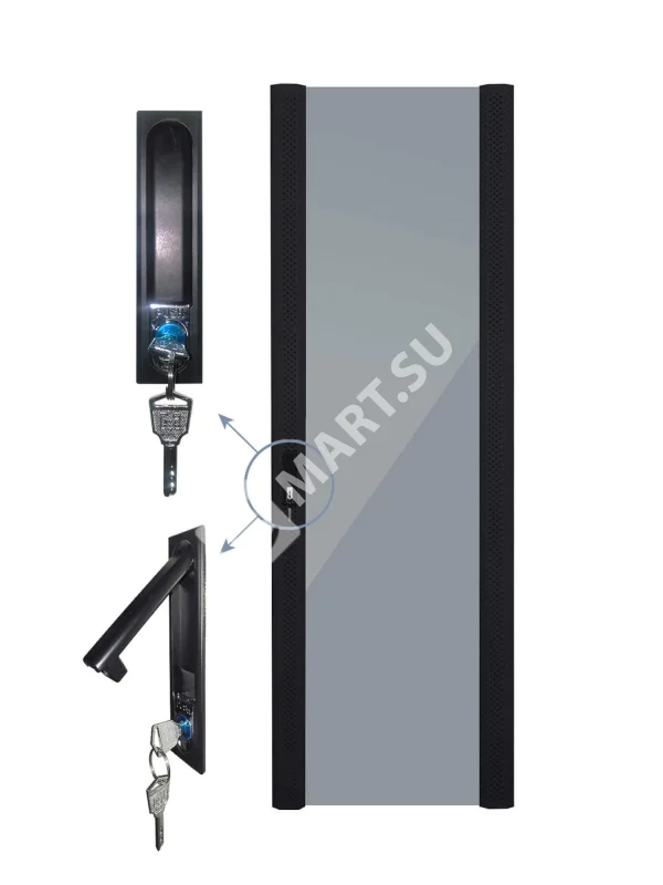 для шкафов серии Expert шириной 800мм, высотой 47U Цвет: черный Закаленное стекло, по бокам расположены металлические плашки с перфорацией для дополнительной вентиляции (перфорация 17%)