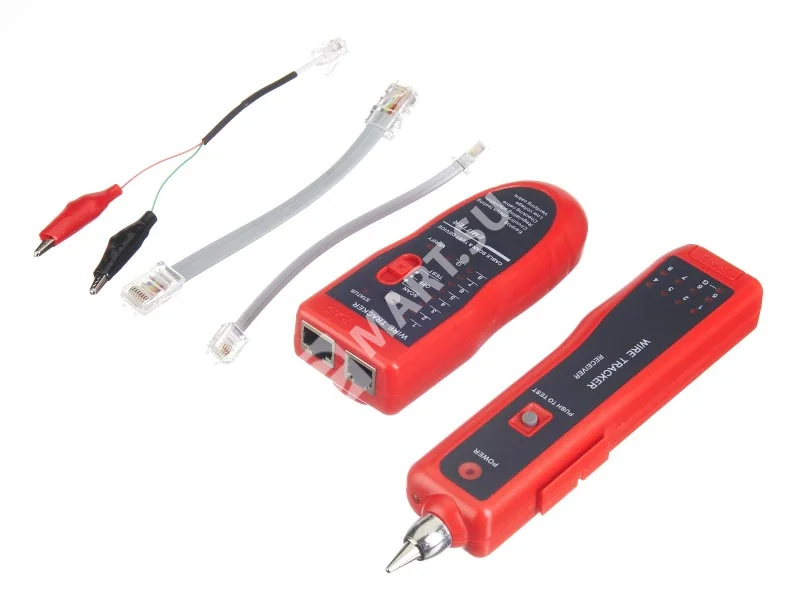Универсальный кабельный тестер используется для сканирования и тестирования коммуникационных линий Позволяет быстро найти нужный кабель среди множества других кабелей. Тестирование телефонных кабелей, витой пары, обесточенных электрических цепей переменного тока. Бесконтактный контроль целостности жил в кабелях, поиск проводов в пучке кабеля или скрытой проводки. Быстрая точная трассировка кабелей, прозвонка и идентификация розеток и портов патч-панелей. Подача непрерывного/переменного тока в линию для поиска кабелей Световая и звуковая индикация при приближении щупа к проводнику или кабелю с источником сигнала Выбор уровня громкости в зависимости от величины принимаемого сигнала и уровня внешних шумов. Встроенный LAN-тестер для проверки и идентификации кабелей UTP (RJ-45/RG-11): светодиодная индикация соединения или ошибок. Питание от 2-х батарей 9В (в комплект не входя