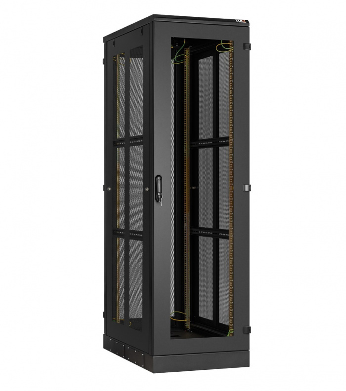 Напольный шкаф 19", 24U, стеклянная передняя дверь, боковые перфорированные стенки и задняя дверь Ш600хВ1280хГ1000мм, в разобранном виде, черный.Серверные шкафы серии TFA — самые продвинутые в линейке TLK. Данная серия отличается повышенной грузоподъемностью, эффективным теплообменом и широкими возможностями настройки внутреннего пространства. Рекомендуются для использования в крупных офисах, ЦОД-ах, а также в сертифицируемых СКС.