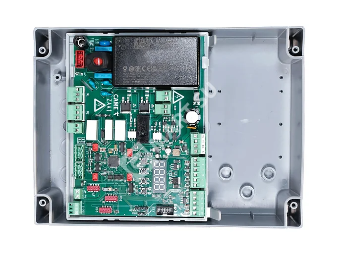 Блок управления ZLX230P (артикул 801QA-0110) представляет собой базовую версию контроллеров серии ZLX 230, предназначенную для управления приводами распашных ворот. Устройство оснащено удобным 7-сегментным дисплеем для программирования и настройки параметров работы. Модель ориентирована на работу с двигателями, не оснащенными энкодером, что делает ее экономичным и надежным решением для стандартных систем автоматизации.